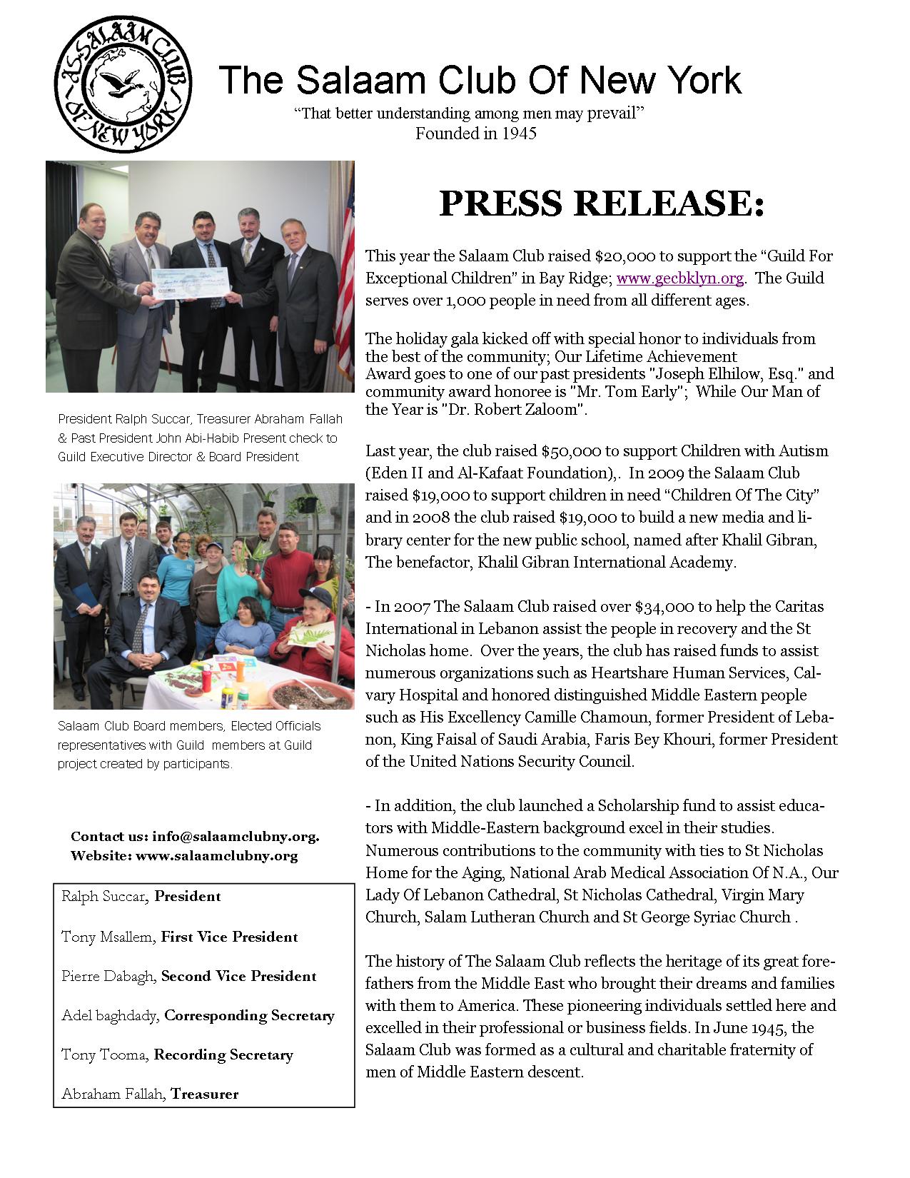 The Salaam Club of NY held its annual Holiday Gala on